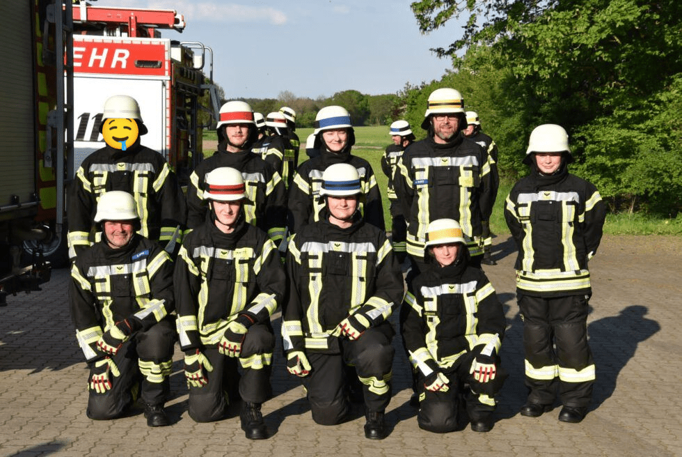 Das Foto der Ausbildungsgruppe zeigt neben unseren Kameradinnen und Kameraden auch Maria Sophie Sandtmann aus Garlstof sowie André Bartz und Sascha Sohns aus Tangendorf.